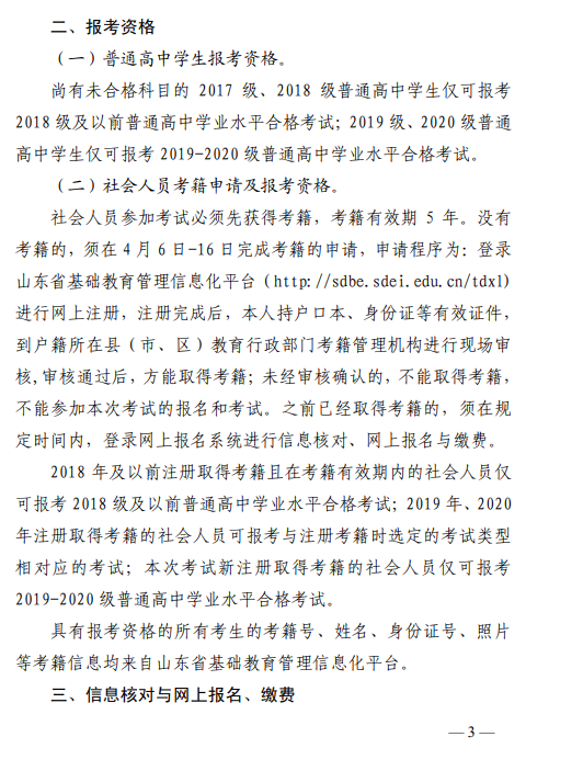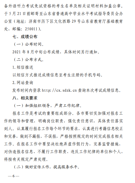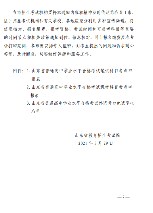 關于做(zuò)好山(shān)東省2021年夏季普通(tōng)高(gāo)中學業水(shuǐ)平合格考試報名工作(zuò)的通(tōng)知
