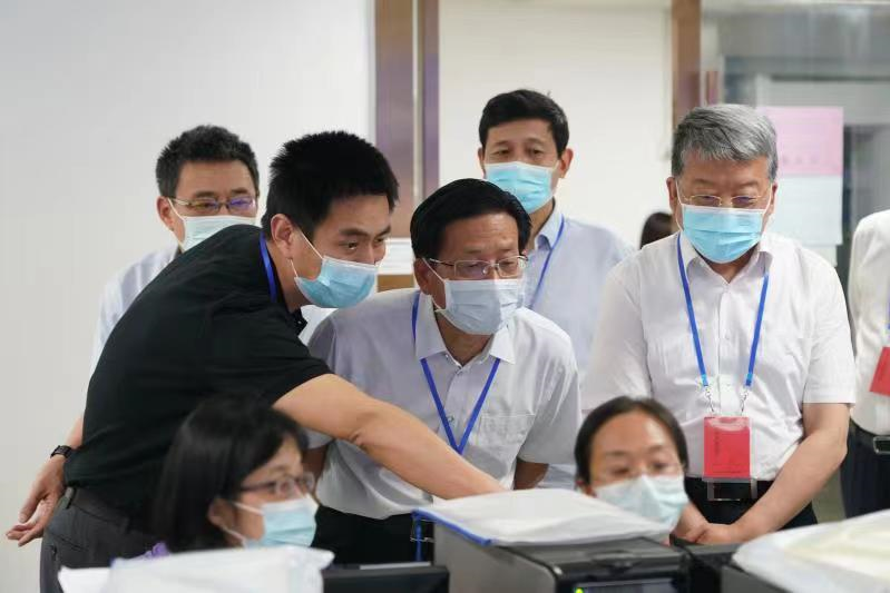 6月16日下午,副省長、省招考委主任孫繼業到山(shān)東大(dà)學中心校(xiào)區(qū)檢查2022年夏季高(gāo)考評卷工作(zuò),看望慰問評卷教師(shī)和(hé)工作(zuò)人(rén)員。