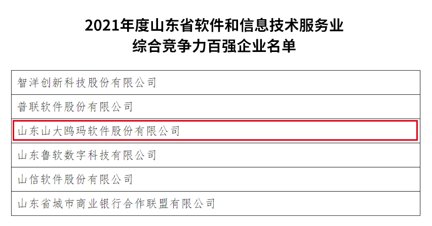 “2021年度山(shān)東省軟件和(hé)信息技(jì)術(shù)服務業綜合競争力百強企業”評選,是我省首次開(kāi)展的軟件行(xíng)業企業評選工作(zuò)。此次評選旨在打造一批帶動力和(hé)支撐力強的軟件企業,發揮其引領帶頭作(zuò)用,提升山(shān)東省內(nèi)軟件行(xíng)業整體(tǐ)競争力和(hé)品牌影(yǐng)響力。