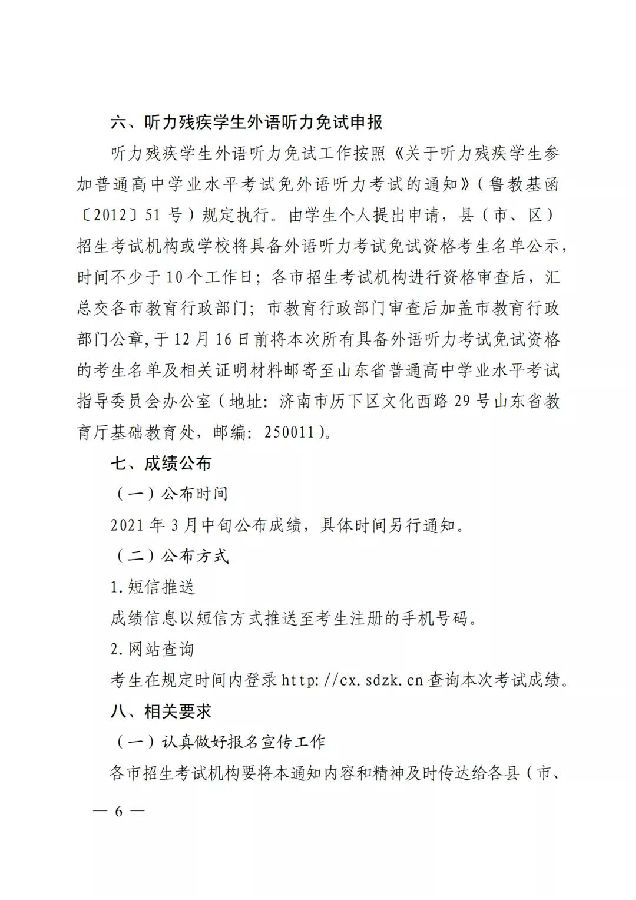 以下為(wèi)山(shān)東省教育招生(shēng)考試院通(tōng)知原文