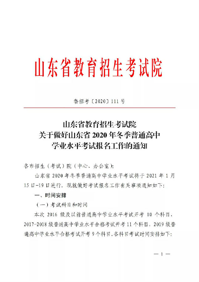 山(shān)東學考10月30日起開(kāi)始報名,2021年1月15日-19日考試!